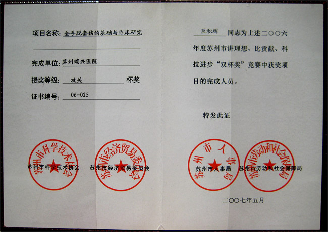 等級:市級|獲得者:瑞興醫院|獲獎年份:2006年所獲榮譽