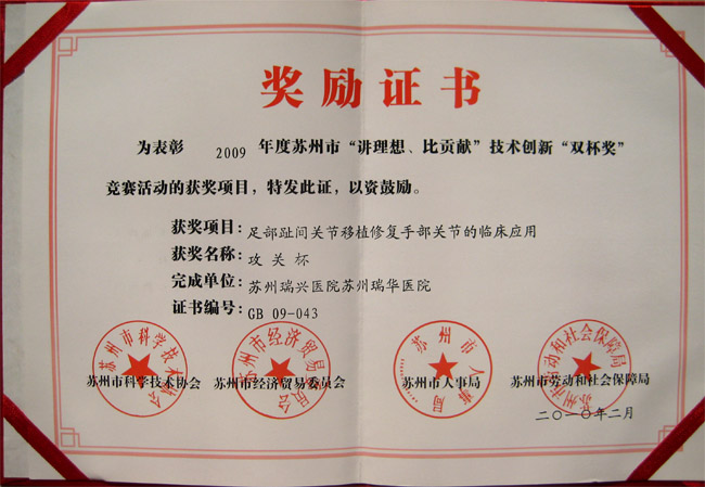 等級:市級|獲得者:瑞興醫院|獲獎年份:2009年所獲榮譽