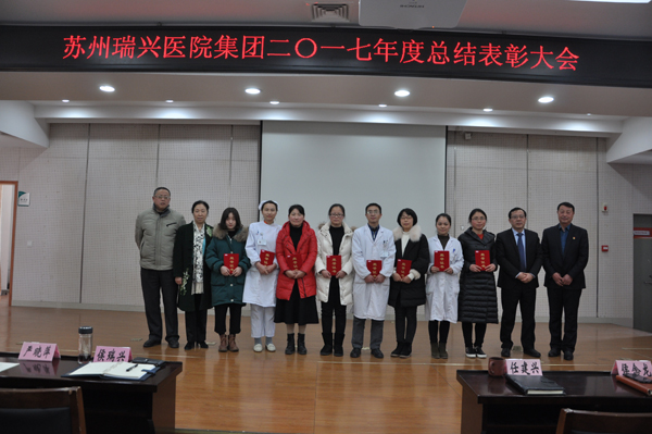 2018年2月11日下午,蘇州瑞興醫(yī)院集團(tuán)2017年總結(jié)表彰大會(huì)在四樓多功能廳隆重舉舉行。集團(tuán)領(lǐng)導(dǎo)班子全體成員、集團(tuán)各醫(yī)院職工代表等約300人歡聚一堂,總結(jié)回顧2017年集團(tuán)取得的各項(xiàng)成績(jī),表彰年度工作中涌現(xiàn)出的先進(jìn)集體、個(gè)人和優(yōu)秀科研工作者以及各類(lèi)活動(dòng)競(jìng)賽中獲獎(jiǎng)的集體和個(gè)人,并對(duì)2018年各項(xiàng)工作進(jìn)行了安排和部署。