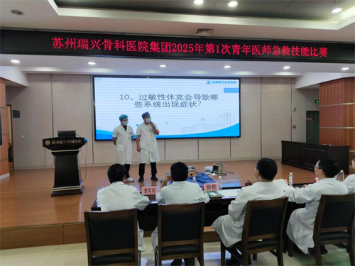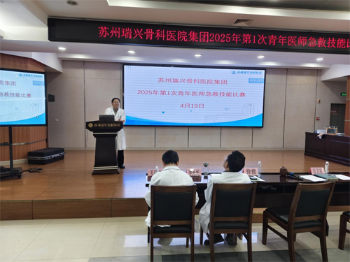 為切實提高青年醫生的專業實操水準,錘煉其應對緊急醫療狀況的過硬本領,4月19日下午,在蘇州瑞華骨科醫院多功能廳舉辦蘇州瑞興骨科醫院集團2025年第一次青年醫師急救技能競賽。